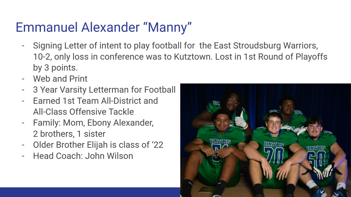Manny Alexander, Web and Print '25, will be attending East Stroudsburg University.