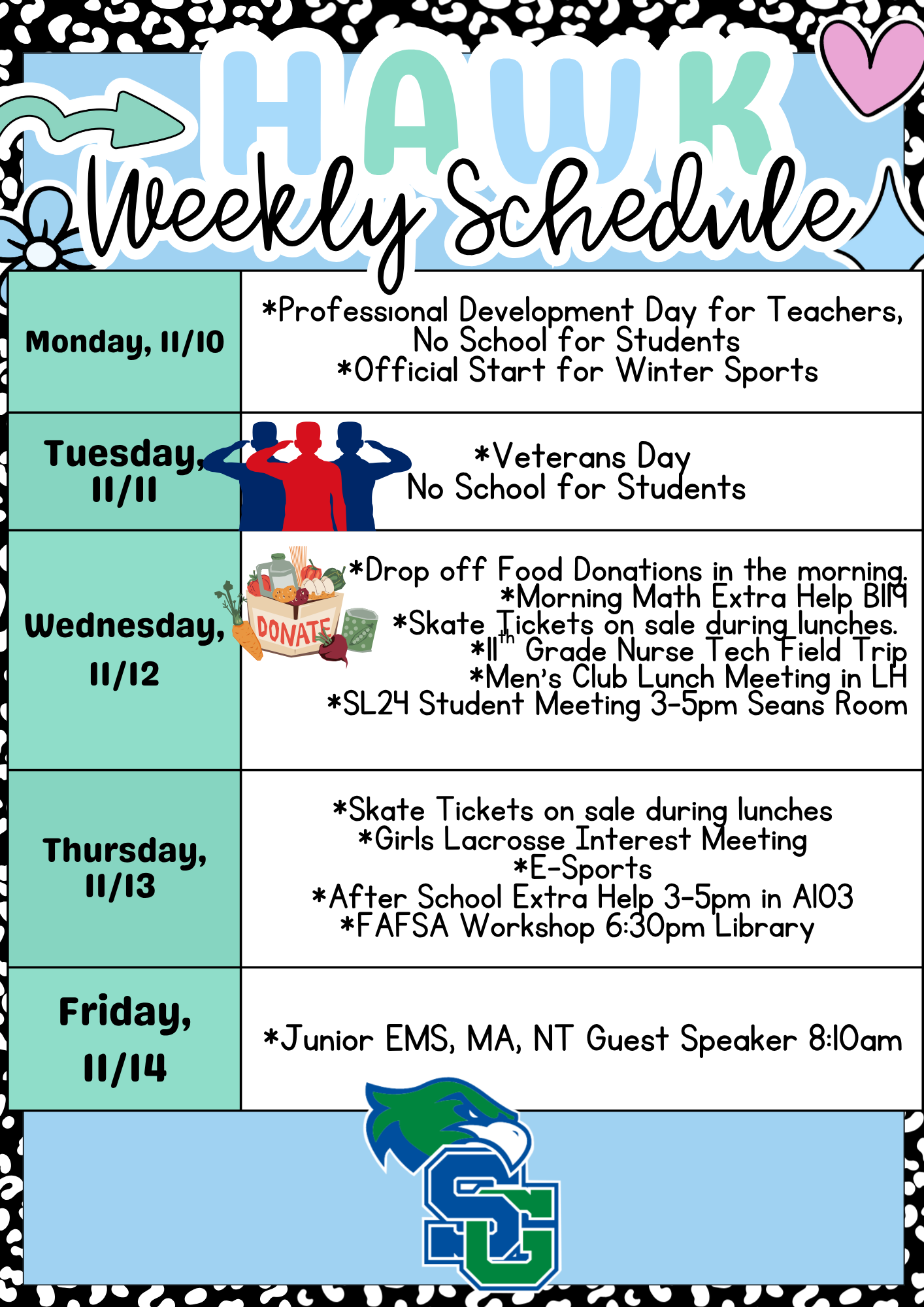 Monday, November 10th: No School for Students. Professional Development for Staff