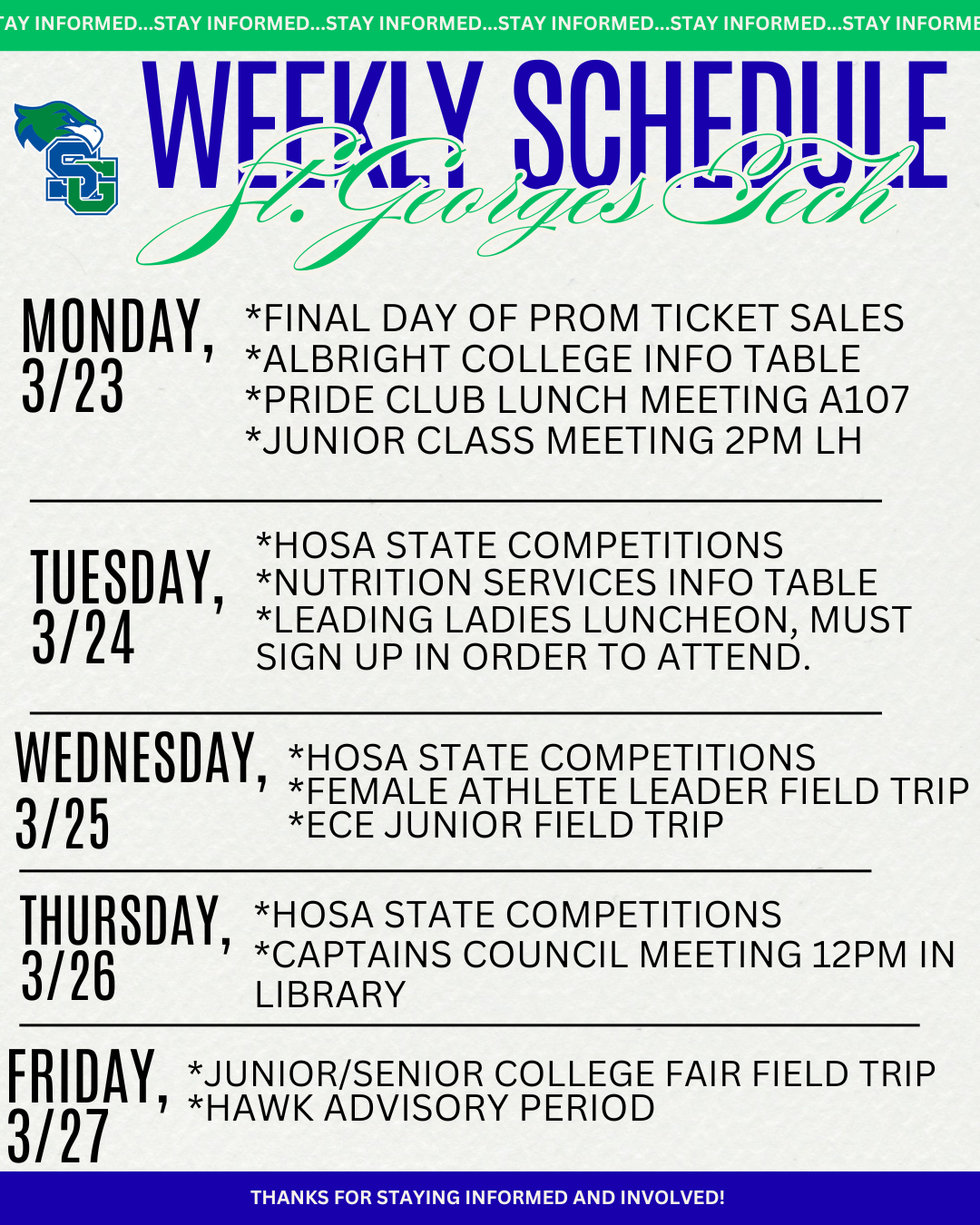 *Friday, March 27th is our next Hawk Advisory Period. Seniors, please take note of the altered bell schedule for your classes.